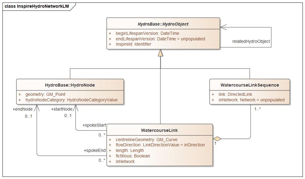 WatercourseLink Ett segment av ett vattendrag i det hydrografiska nätverket, bestående av vattendrag (linje), stomlinje eller otydlig stomlinje. Inspirenätverket är ett geometriskt nätverk med noder och länkar. Enstaka vattendrag som inte ingår i nätverk redovisas i objektet Watercourse. Stomlinje: Fiktiv linje genom vattenytor som behövs för att kunna bygga ett sammanhängande linjenätverk. Stomlinjerna ligger alltid i en vattenyta, aldrig på land. Där de slutar ansluter de mot en strandlinje, en stängning eller en annan stomlinje. När de ansluter mot ett vattendrag eller en otydlig stomlinje ansluter de även mot strandlinjen. De är alltid digitaliserade i strömriktningen. Stomlinje, otydlig: Fiktiv linje som förbinder flödesnätverket genom andra marktyper än vattenytor. Otydliga stomlinjer används för vattendrag under mark samt för flöden genom exempelvis sankmark och åker. | Förutom de nedärvda attributen från HydroObject redovisas nedanstående attribut: